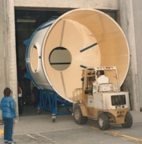 Space Station Mockup Shell Roll-in Day. Marc designed the mockup and its steel cradle.